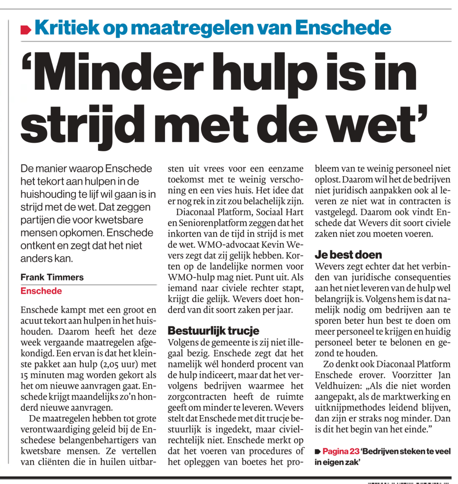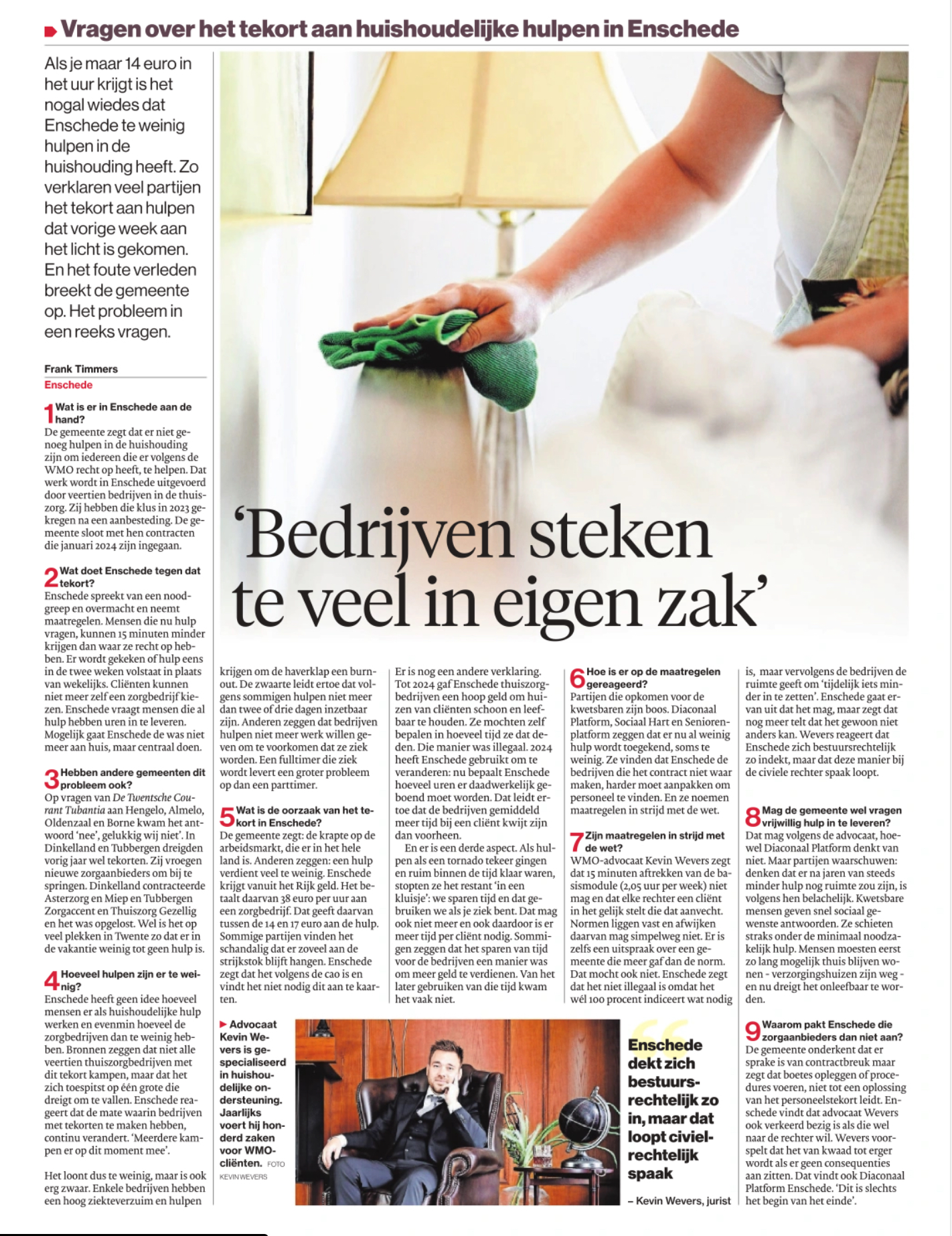 Sinds 2015, toen de huishoudelijke hulp werd gedecentraliseerd, koos Enschede voor resultaatbekostiging.