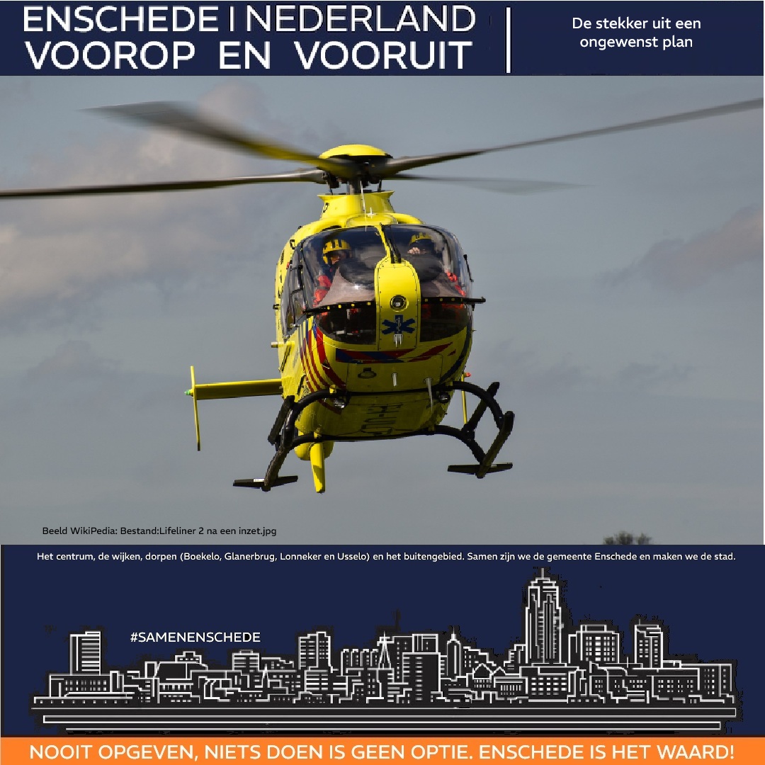 In mei 2021 nam de gemeenteraad van Enschede met ruime meerderheid een motie aan waarin het college werd opgeroepen om samen met het Medisch Spectrum Twente (MST) en andere regionale partners te lobbyen voor een vaste standplaats van een traumahelikopter op Twente Airport. De motie werd destijds door mijzelf ingediend namens Groep Versteeg / Verbindend Enschede, en kreeg steun van onder meer Burgerbelangen Enschede (BBE), VVD, CDA, GroenLinks, PVV en SP.