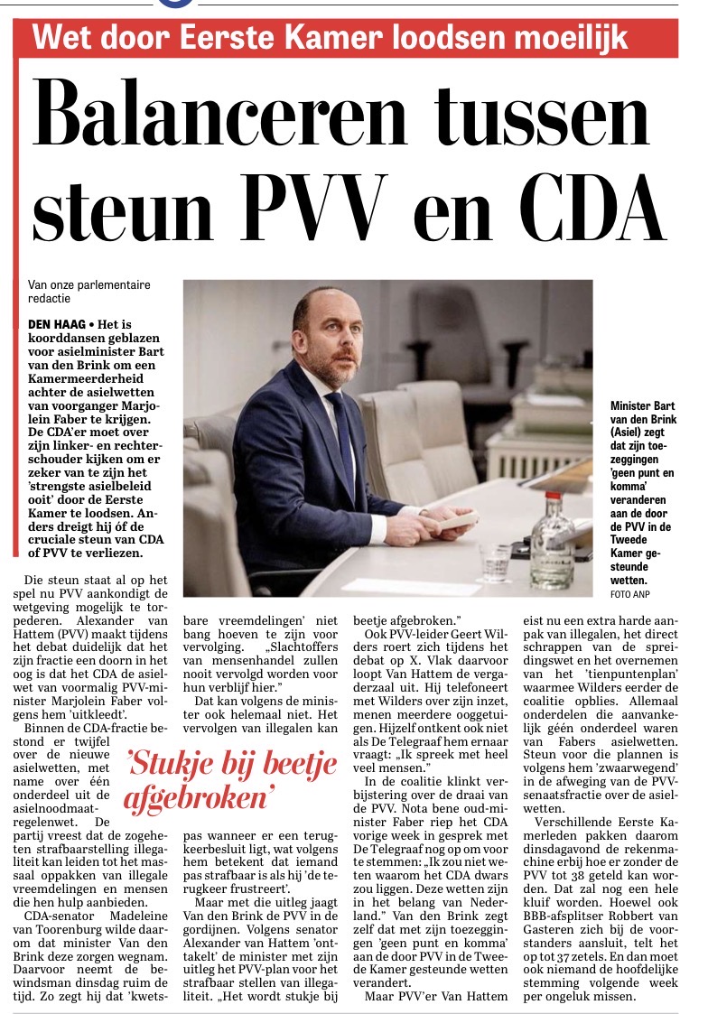Als je als partij zegt dat je grip wilt op asiel en migratie, dan moet je ook bereid zijn om stappen te zetten die die grip dichterbij brengen. Niet alles of niets, maar concrete vooruitgang. Want elke stap die je blokkeert, kan ook een stap zijn die lokaal gebruikt had kunnen worden om verdere groei van AZC’s te begrenzen.