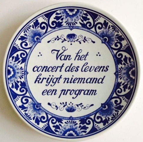 De gedachten gaan ook naar een tegeltjes wijsheid die vroeger bij veel mensen thuis hing;
