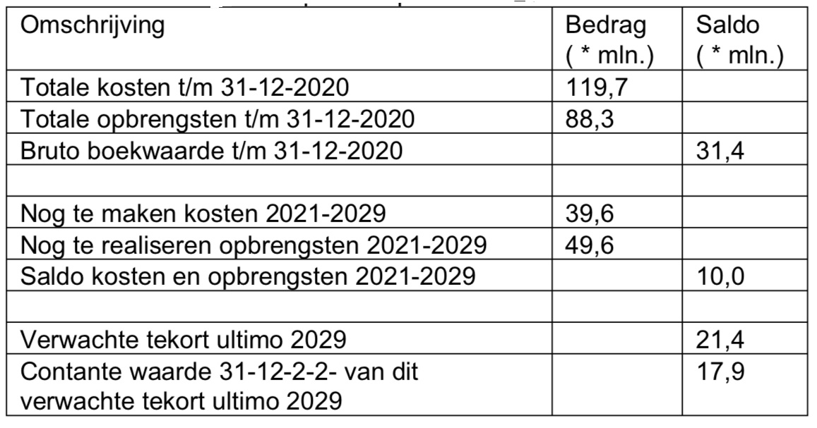 In onderstaande tabel hebben we de grondexploitatie per eind 2020 voor u samengevat.