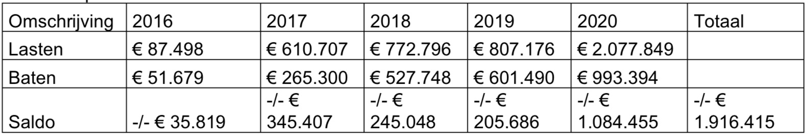 De luchthaven is sinds 2016 weer in bedrijf. De lasten en baten hebben zich in die periode als volgt voorgedaan: