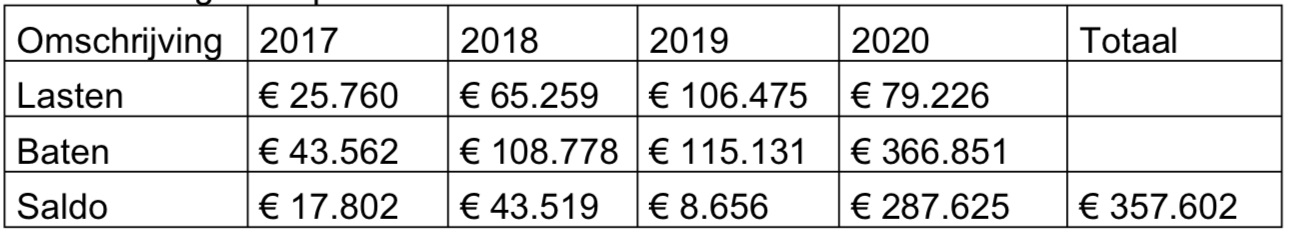 Technology Base exploiteert vastgoed sinds 2017. Zie voor de resultaten daarvan de volgende tabel.