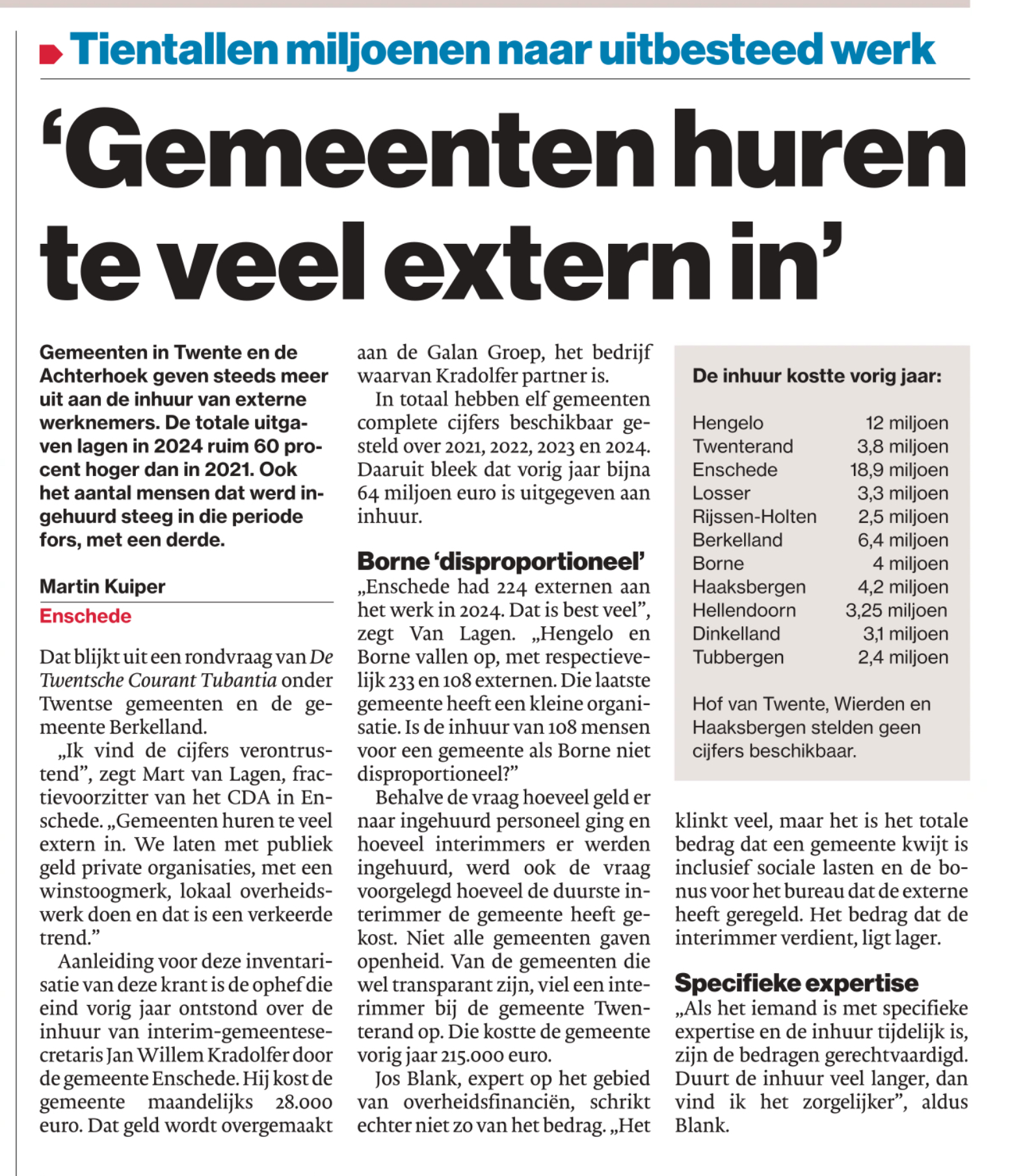 Reactie op “Gemeenten huren te veel extern in” (Twentsche Courant Tubantia)