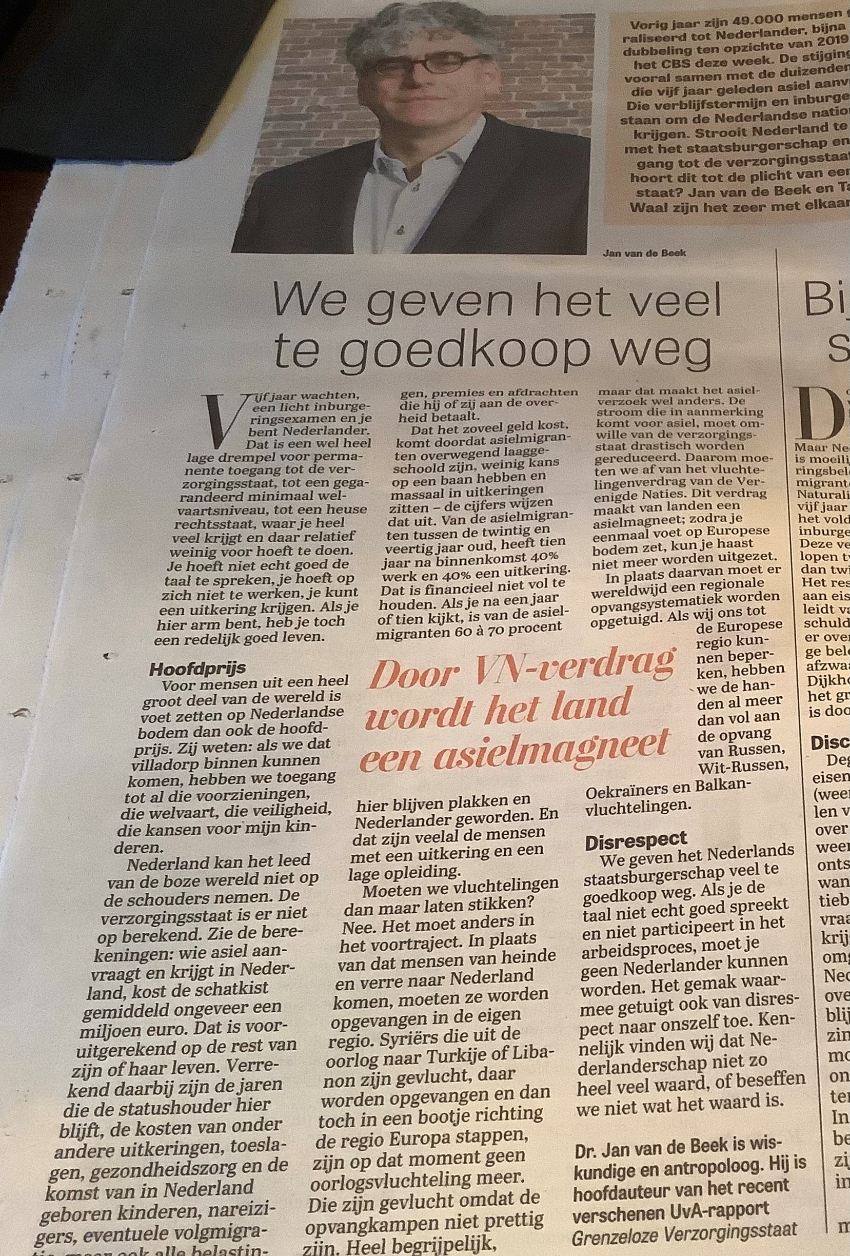 Ontstaat er weer de sociale samenhang en de trots op het Nederlanderschap. En steeds meer mensen spreken dit inmiddels ook uit. Lees ook dit stuk van Dr. Jan van der Beek die aangeeft ‘We geven het Nederlands staatsburgerschap veel te goedkoop weg. Als je de taal niet echt goed spreekt en niet participeert in het arbeidsproces, moet je geen Nederlander kunnen worden’.