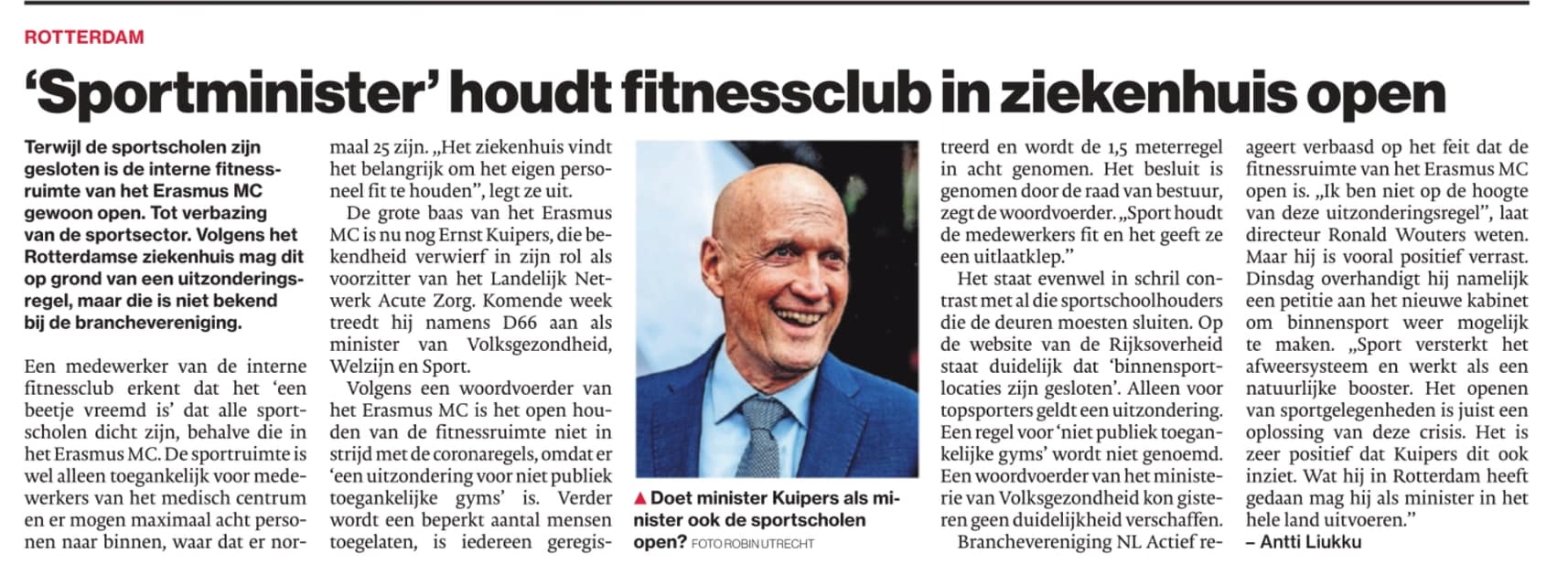 Ernst Kuipers is meegegaan in het verhaal van politici en hebben de eigen sector laten zitten. Hij is de volgende op Volksgezondheid die zijn ijdelheid streelt. Zijn reactie ‘ik ben nog niet beëdigd’ zegt in die zin misschien alles. Ondertussen wordt de Nederlandse bevolking een verdere angstpsychose aangepraat: discriminatie van gezonde personen (die niet behoren tot de eigen kring van bevoordeelden) verder gelegaliseerd en liggen de zieken nog steeds in het ziekenhuis met te weinig bed- en verpleeg-capaciteit.