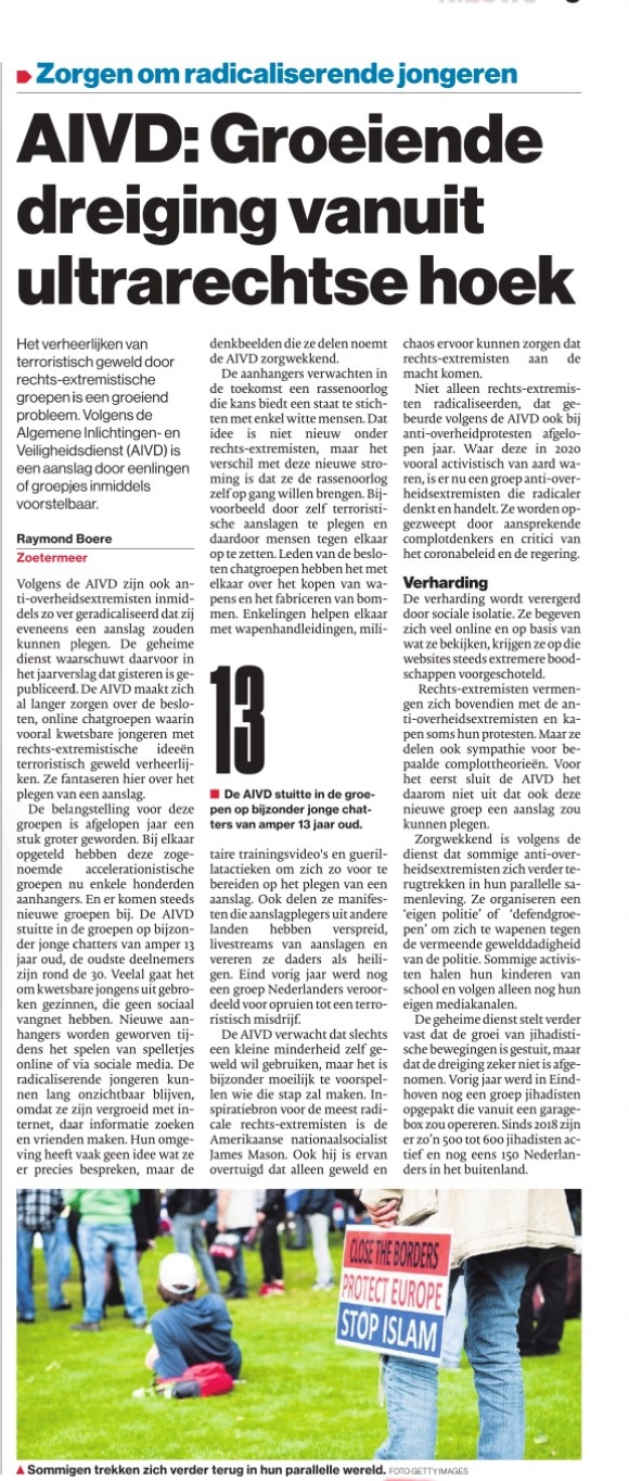 Volgens het AIVD is de groei van jihadistische bewegingen gestuit maar is er een groeiende dreiging vanuit ultrarechtse hoek. En volgens het AIVD de inspiratiebron voor de meest radicale rechts-extremisten de nationaalsocialist James Mason. Een bijna 70 jarige Amerikaanse neo-Nazi die in een door de staat betaald appartement woont en eet in gaarkeuken.