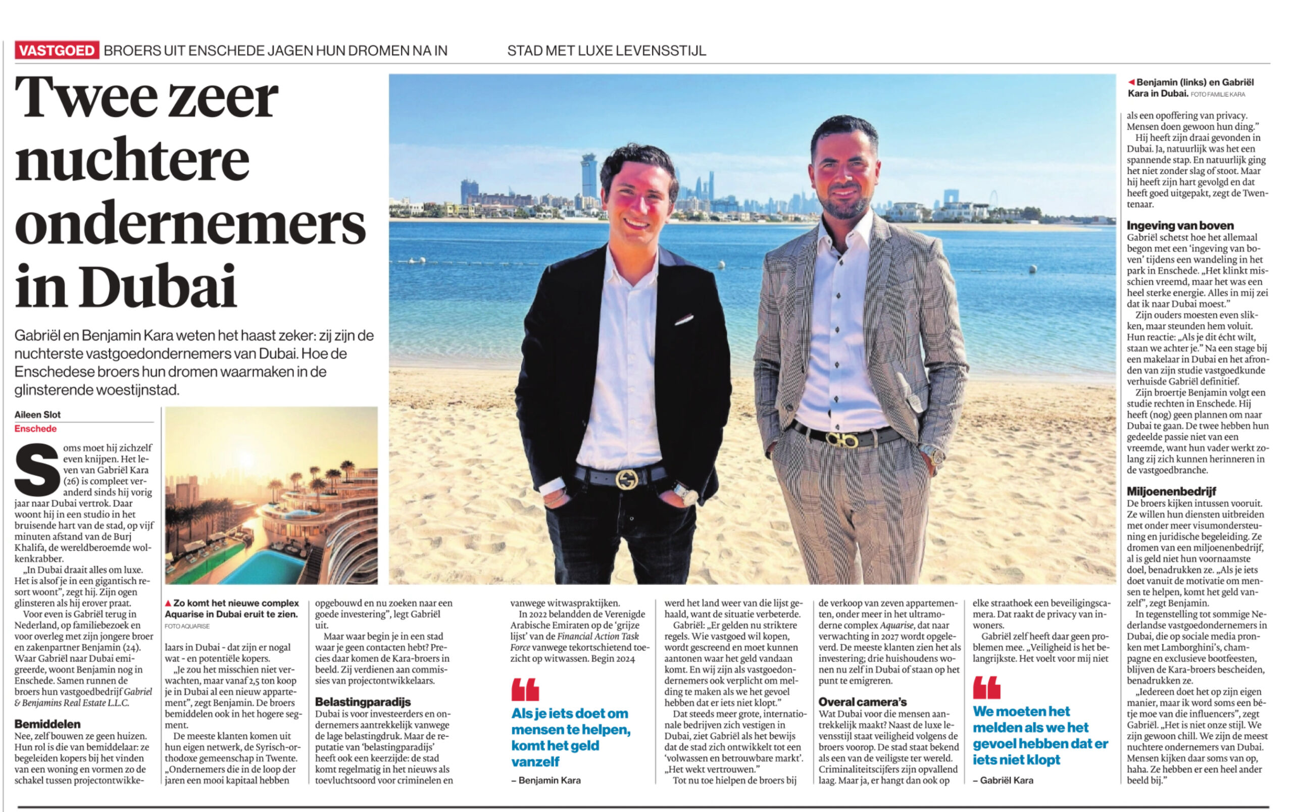 Afgelopen week stond ik samen met mijn broer in de Tubantia met ons ondernemersverhaal. We zijn actief in vastgoed in Dubai. Mijn broer woont daar, ik werk gewoon vanuit Nederland. Zo combineren we het internationale ondernemerschap met de nuchterheid van Twente.
